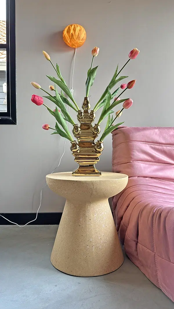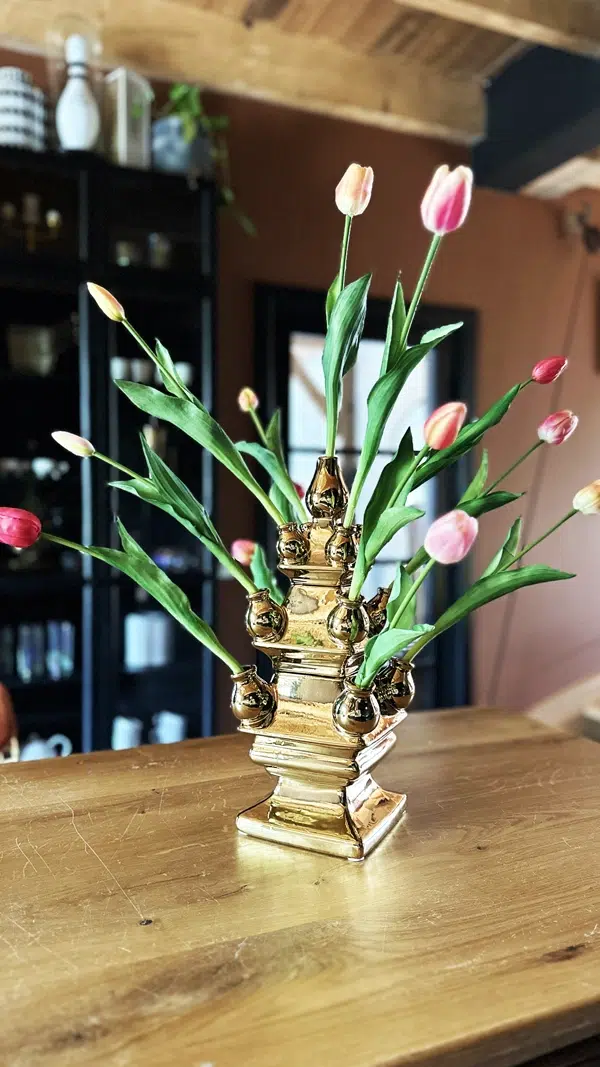 Begrüßen Sie diese kultige Tulpenvase mit glänzendem Rand! Diese 3-teilige Heinen Delfter Blau Tulpenvase in Gold ist alles andere als langweilig. Stapelbar, stilvoll und funkelnd - dieses Kunstwerk wird Ihre Blumen wie nie zuvor zum Strahlen bringen. Stellen Sie es auf Ihren Tisch, die Fensterbank oder in eine Ecke, die etwas Dramatik gebrauchen könnte. Sofortiger Aha-Effekt garantiert!