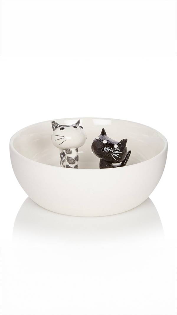 Fiep Westendorp maakte vanaf 1958 illustraties bij de verhaaltjes die Mies Bouhuys schreef over haar eigen katten Pim en Pom. Die verhaaltjes, versjes en dialogen verschenen tien jaar lang op de kinderpagina van de krant Het Parool. Fiep verzon geheel eigen katten met een ovaalvormige kop, neus en ogen als drie rondjes op een lijn, heel korte pootjes en een korte staart. Een echte ‘Fiep-kat’. Dit deco schaaltje is een echte ode aan Nederlands erfgoed en creatief design.