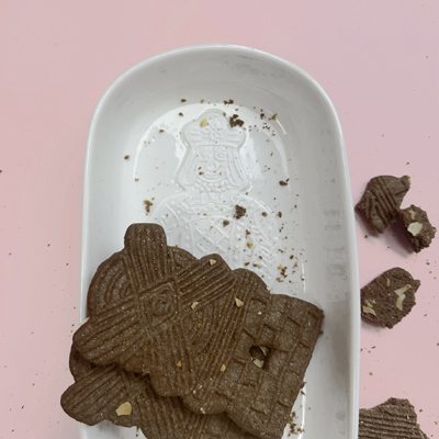 Het ontwerp is geïnspireerd op traditionele Hollandse motieven en iconen die vaak terugkomen in de collectie van Hollandsche Waaren. De schaal is ideaal om speculaas, koekjes, zoete snacks of andere lekkernijen op te serveren, maar staat ook prachtig als decoratief object op tafel, buffet of keukenplank.